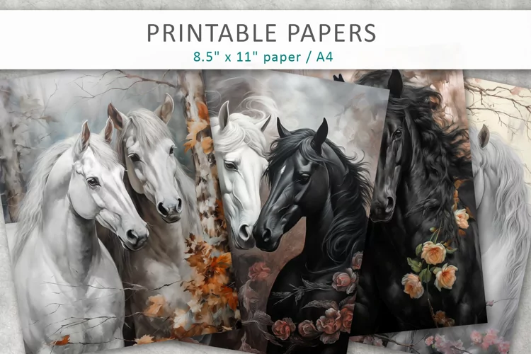 Scrapbook Paper Animal Paper Printable Design Journal Pages Digital Cards Horses Digital Paper Junk Journal Printable Paper Horse Junk Journal Printable Horse Junk Journal Kit Horse Journal Pages