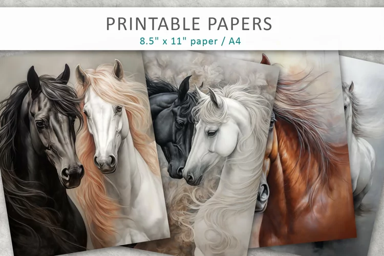 Scrapbook Paper Animal Paper Printable Design Journal Pages Digital Cards Horses Digital Paper Junk Journal Printable Paper Horse Junk Journal Printable Horse Junk Journal Kit Horse Journal Pages
