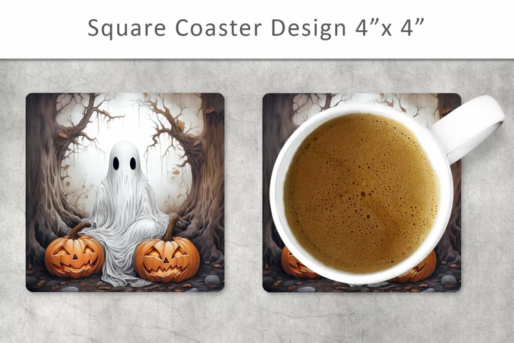 halloween ghost square coaster, halloween ghost magnet example image 1