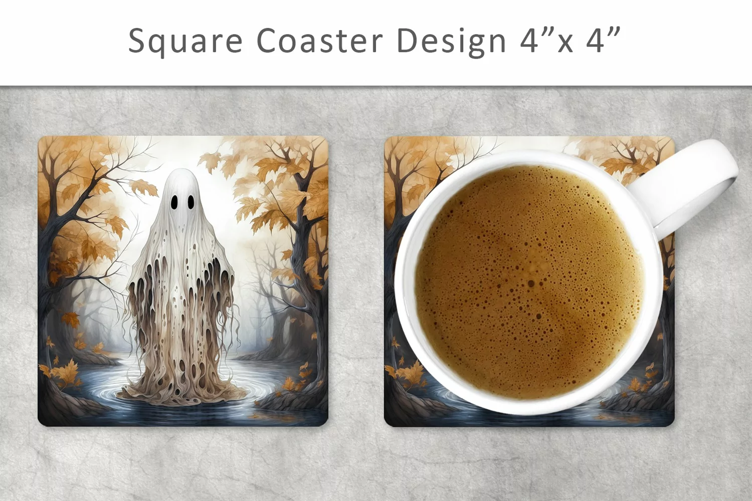 Halloween Ghost Square Coaster, Kitchen Decor example image 1