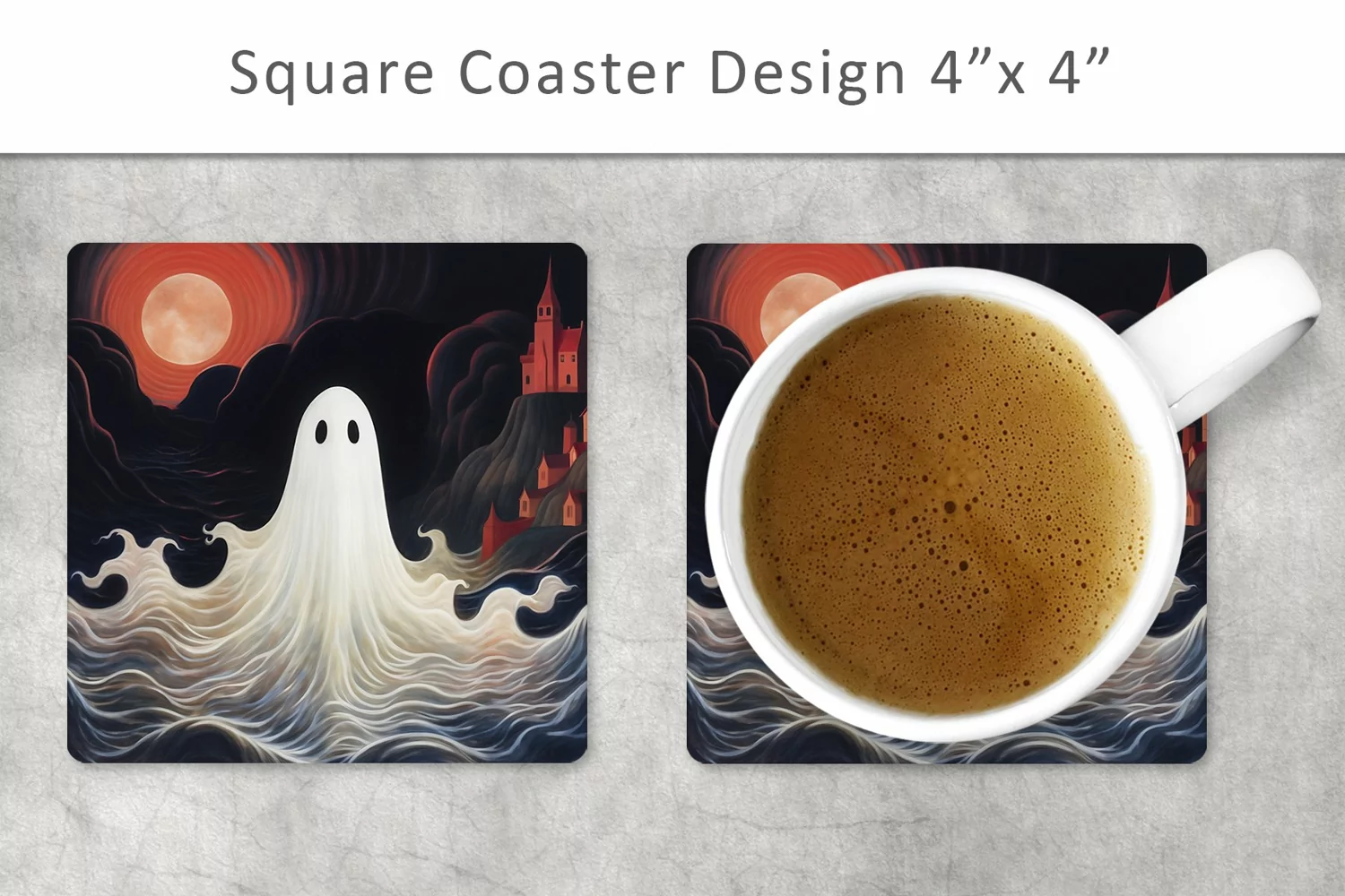 Greeting Cards Digital Scrapbooking Kitchen Decor Craft Projects Digital Collage Sheet Sublimation Png Square Magnets Halloween Square Coaster Ghost Square Coaster Halloween Ghost Cards