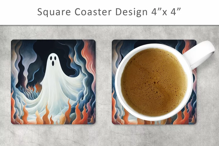 Halloween Ghost Square Coaster, Halloween Ghost Card