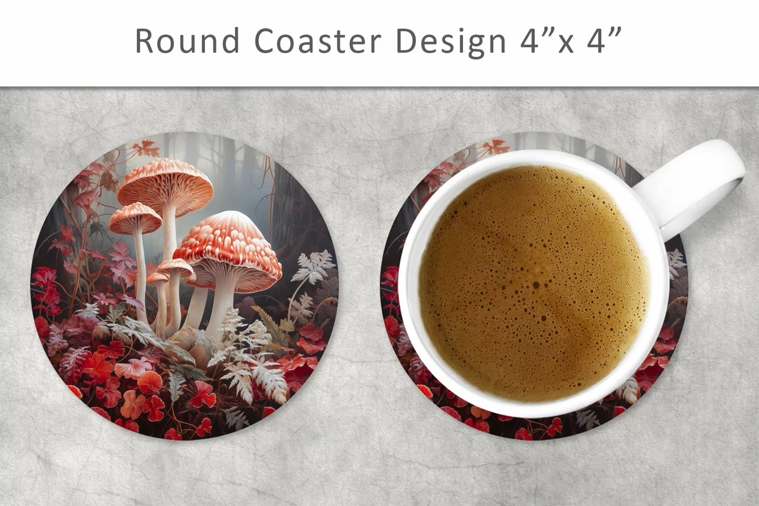Mushroom Round Coaster, forest kitchen decor example image 1