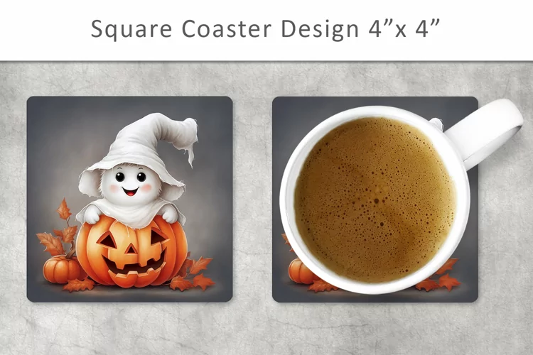 Halloween Ghost Square Coaster example image 1