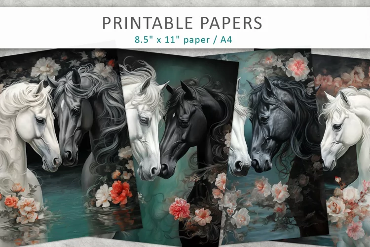 Scrapbook Paper Animal Paper Printable Design Journal Pages Digital Cards Horses Digital Paper Junk Journal Printable Paper Horse Junk Journal Printable Horse Junk Journal Kit Horse Journal Pages