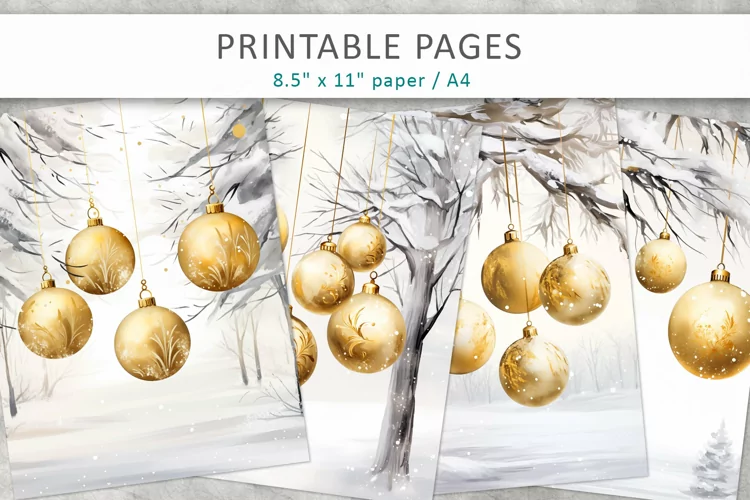 Digital Paper Scrapbook Paper Digital Scrapbook Printable Pages Junk Journal Kit Vintage Junk Journal Christmas Junk Journal Watercolor Christmas Baubles Christmas Watercolor Illustration Winter Junk Journal