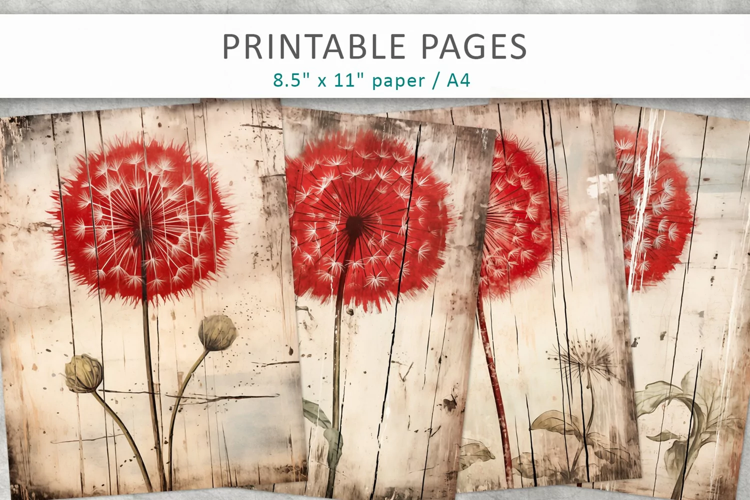 Scrapbooking Paper Scrapbook Paper Vintage Paper Junk Journal Printable Sheets Vintage Ephemera Junk Journal Paper Dandelion Grunge Paper Dandelion Junk Journal Dandelion Pages