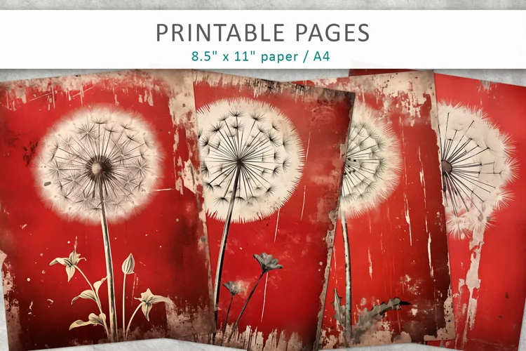 Similar Design Products to Dandelion Grunge Junk Journal, printable sheets