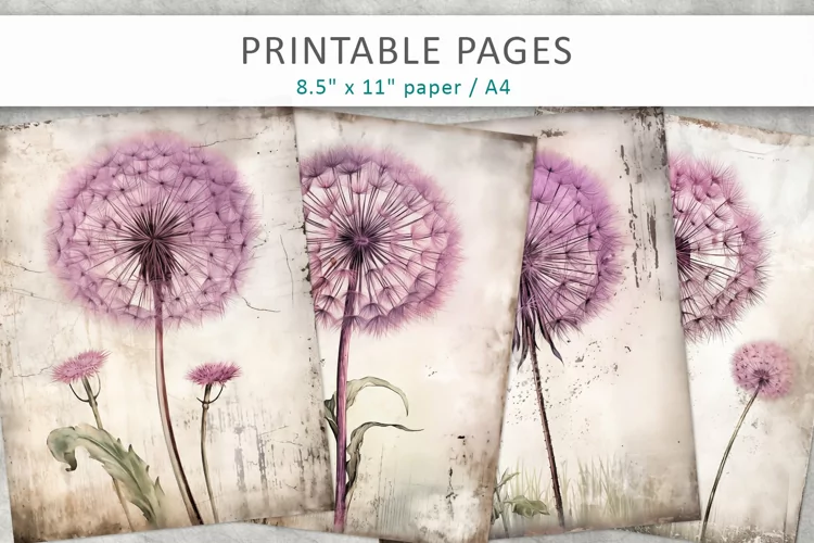 Dandelion Grunge Printable Junk Journal, vintage papers