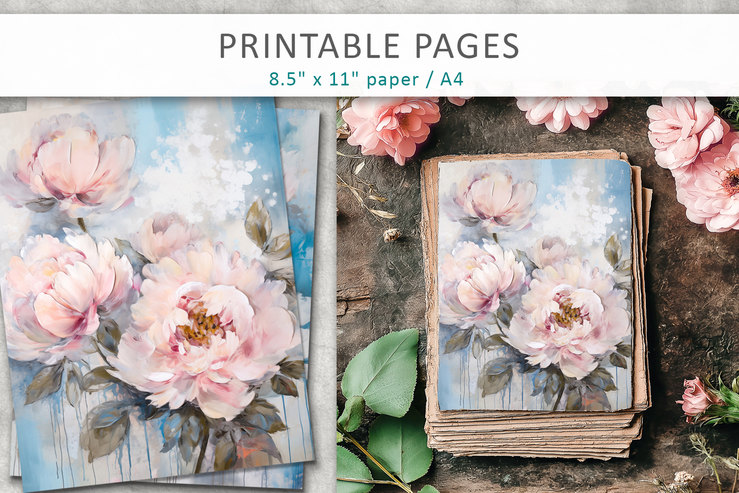 Vintage Ephemera Shabby Chic Floral Paper Grunge Flower Digital Paper Grunge Floral Junk Journal Vintage Peonies Printables Peonies Junk Journal Pages Dark Floral Junk Journal Distressed Flower Printables Antique Peonies Romantic Floral Grunge Paper