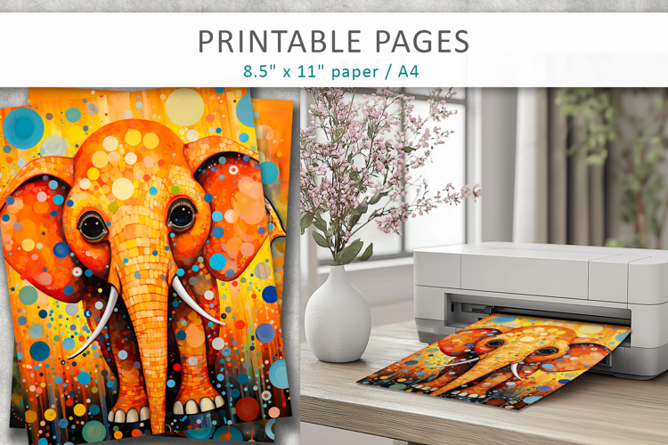 mixed media elephant art, printable pages example image 1