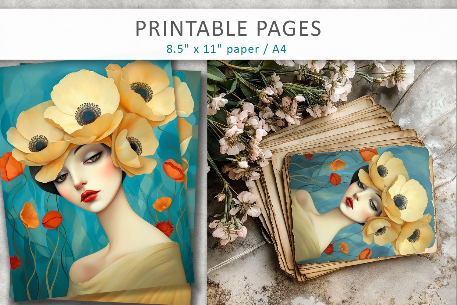 Woman Printable Woman Collage Sheet Woman Art Printable Woman Face Printable Female Illustration Pages Woman Pages Mixed Media Woman Art Feminine Art Printable Junk Journal Woman Art Romantic Woman Journal Page