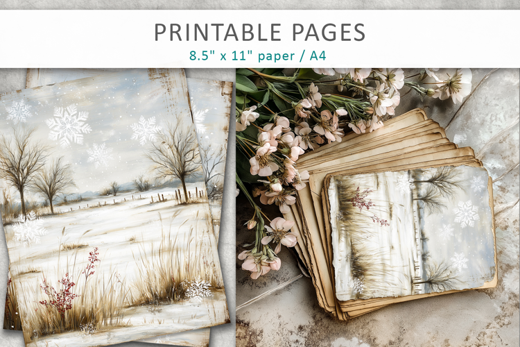 Perfect for junk journals, scrapbooking, card making, DIY crafts, collages, and printable winter decor, these pages bring a moody and nostalgic winter feel to your creative projects.