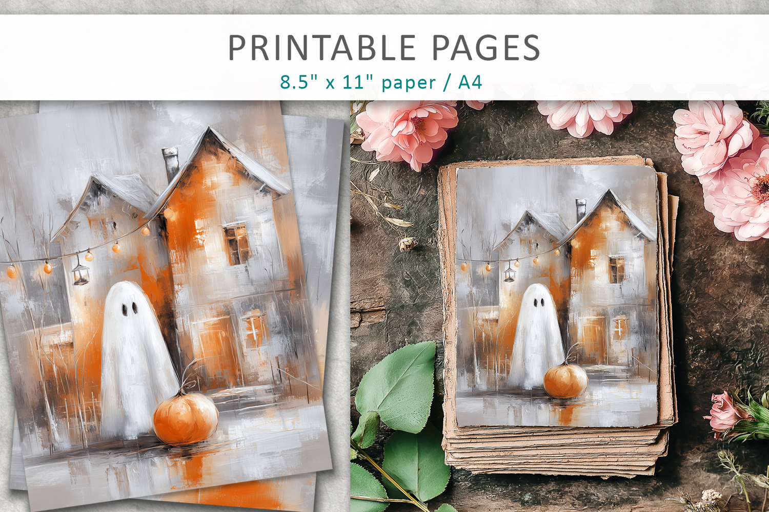 Celebrate Halloween with an artistic twist using these printable junk journal pages. Featuring pumpkins and friendly ghosts, the illustrations are created with mixed media techniques and grunge textured backgrounds for a unique art-inspired look.