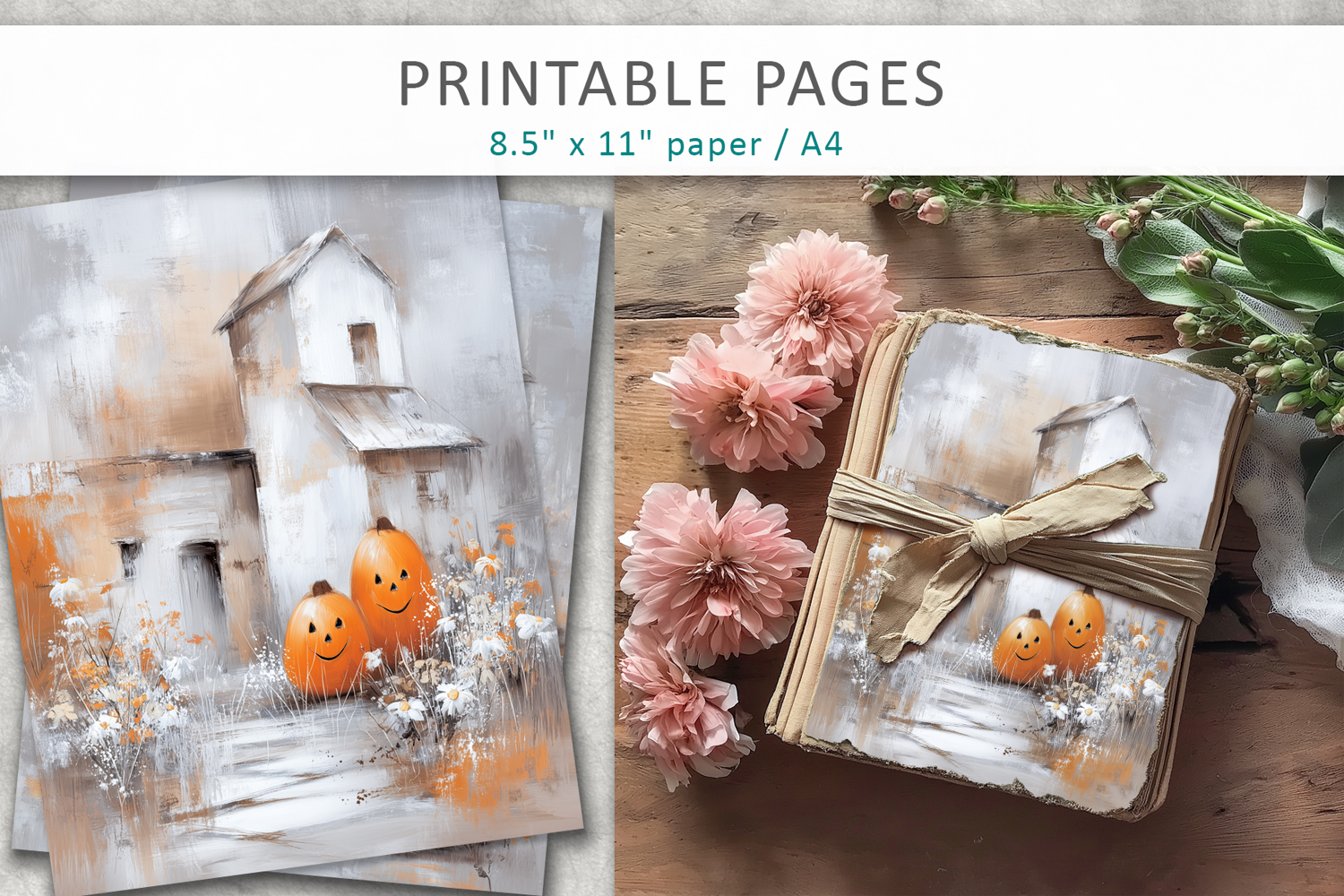 Celebrate Halloween with an artistic twist using these printable junk journal pages. Featuring pumpkins and friendly ghosts, the illustrations are created with mixed media techniques and grunge textured backgrounds for a unique art-inspired look.