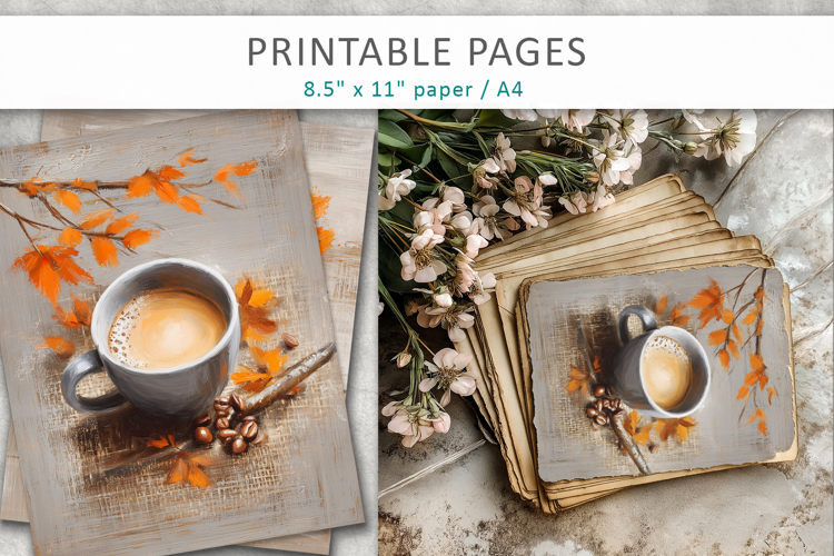 Scrapbook Pages Vintage Paper Coffee Background Grunge Fall Junk Journals Fall Journal Coffee Junk Journal Autumn Coffee Cup Of Coffee Pages Cozy Pages Printable