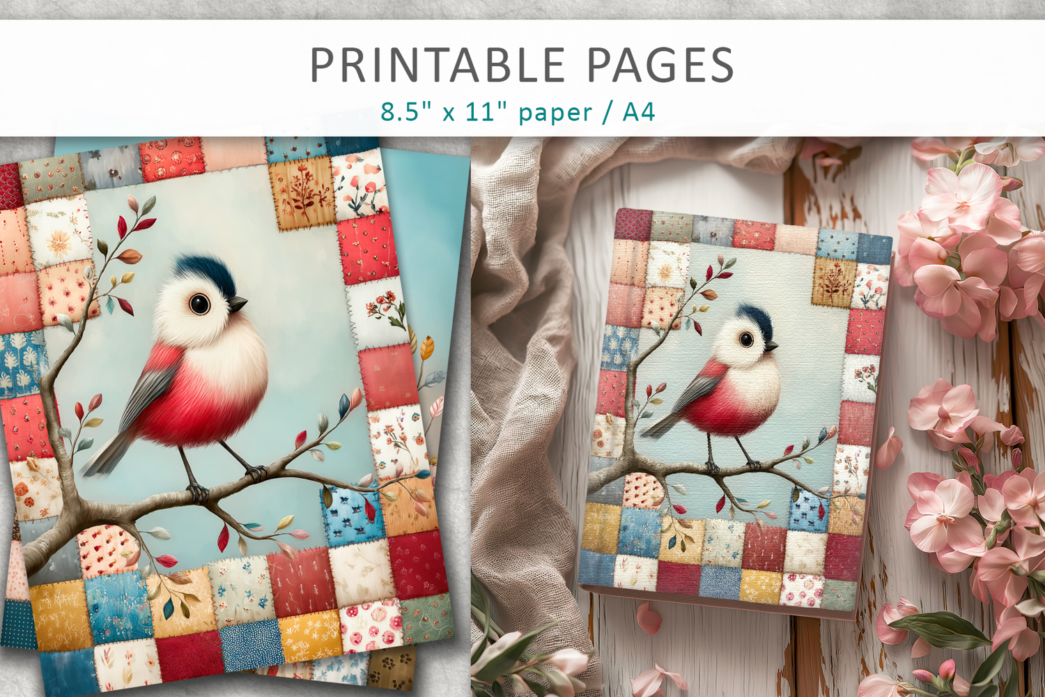 Patchwork Bird Printable Art Pages Vintage Bird Illustrations For Crafts Colorful Bird Junk Journal Papers Bird Themed Scrapbook Printables Artistic Patchwork Animal Designs Digital Bird Prints For Wall Decor Handmade Style Printable Bird Art Retro Fabric Texture Bird Designs Whimsical Bird Clipart For Printing Creative Bird Artwork Digital Papers
