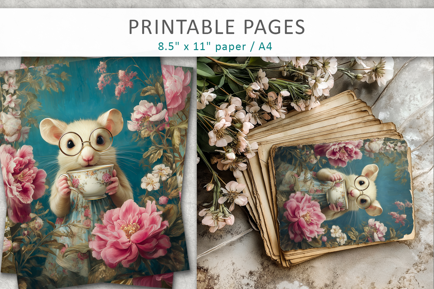 Every page is crafted with soft vintage tones, textured backgrounds, and charming character details that create a cozy, artistic atmosphere. Whether you're designing a children's story, decorating a nursery, or creating unique handmade projects, this set adds instant sweetness and retro flair.
