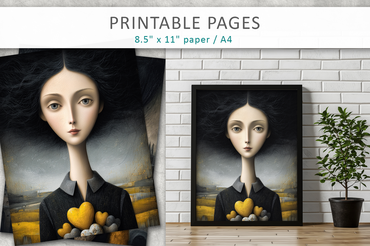 These printable pages are perfect for wall art prints, greeting cards, posters, books, art journals, scrapbooking, junk journals, collage making, and mixed media projects. The textured backgrounds and surreal compositions add depth and character, making each design stand out beautifully both in print and digital use.