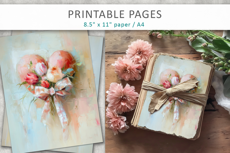 These high-quality printable floral heart pages are ideal for junk journals, scrapbooking paper, handmade greeting cards, wedding invitations, wall art, posters, calendars, home décor, collages, and DIY gifts. The soft, artistic floral style adds an elegant and romantic touch to any craft project.