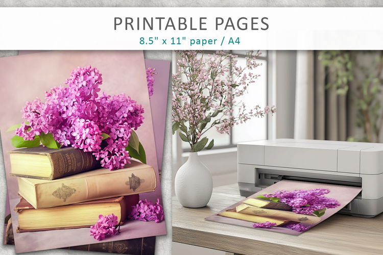 These high-quality printable lilac pages are perfect for junk journals, scrapbooking paper, handmade cards, posters, calendars, wall art, home décor, collages, planners, and DIY crafts. The soft floral and café-inspired aesthetic makes this set ideal for spring-themed projects, cozy journaling, and elegant paper crafts.