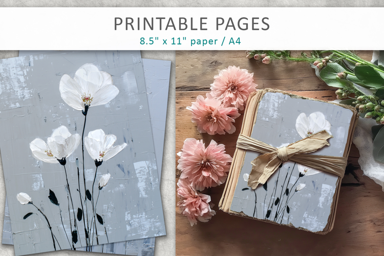 Artistic painted floral printable pages with grunge texture. Perfect for junk journals, scrapbooking, wall art, cards, collage, planners and creative DIY projects.