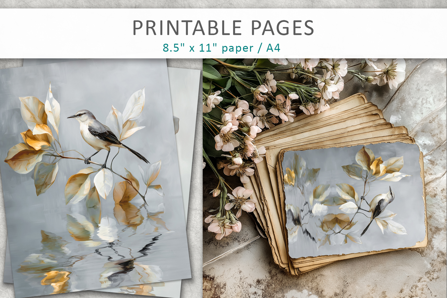 Scrapbooking Paper Digital Scrapbook Digital Craft Paper Bird Wall Art Bird Artwork Junk Journal Kit Vintage Bird Illustration Mixed Media Printable Diy Craft Supplies Paint Texture Art