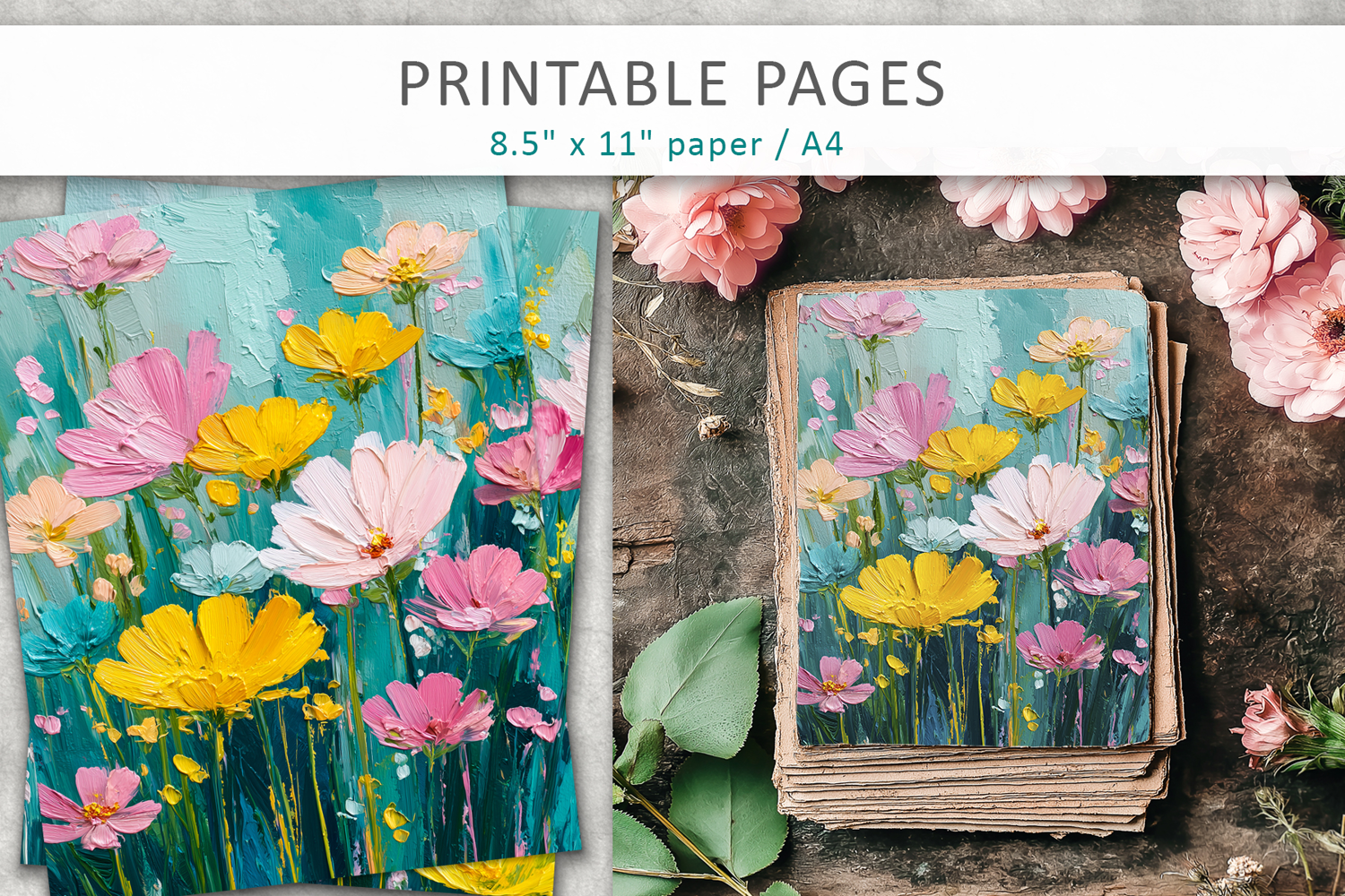 This printable set is ideal for artists, crafters, and journal lovers who enjoy working with artistic printable papers and floral designs.