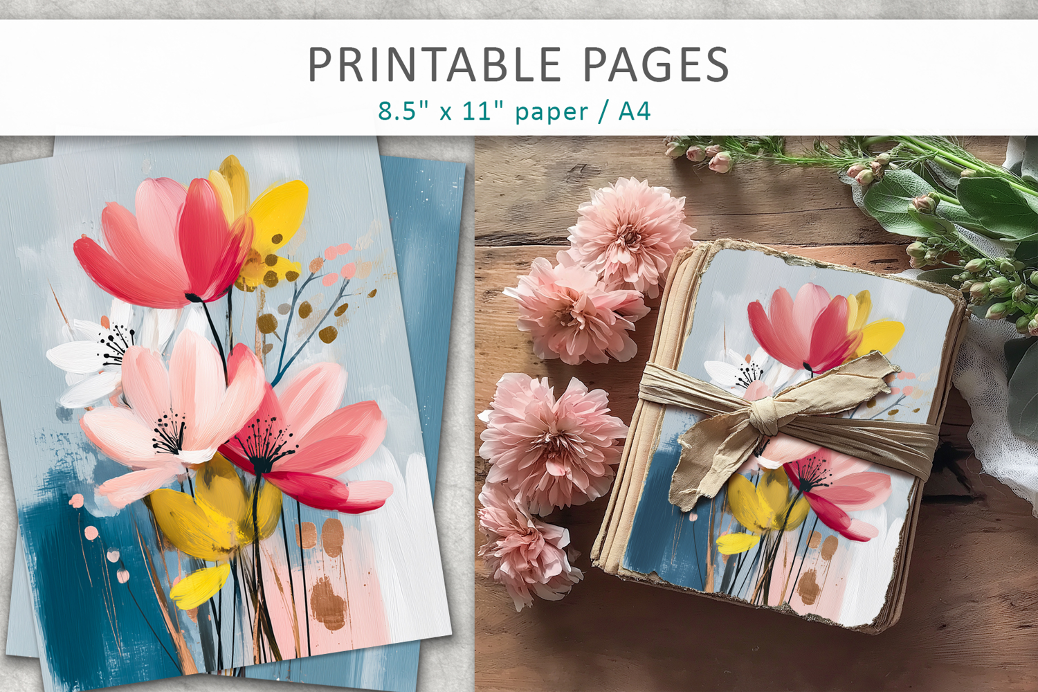 This unique digital collection features artistic printable pages created in a modern painterly collage style. Each illustration is made using expressive brush textures and vibrant paint strokes, creating a bold and contemporary artistic look.