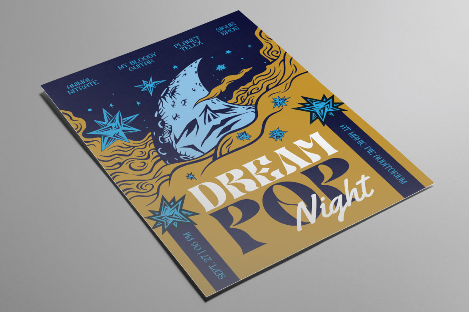 Live Music Flyer Dream Pop Flyer Indie Concert Poster Night Music Flyer Dreamy Event Flyer Retro Pop Poster Design Alternative Music Flyer Cosmic Music Poster Aesthetic Concert Flyer Modern Gig Flyer