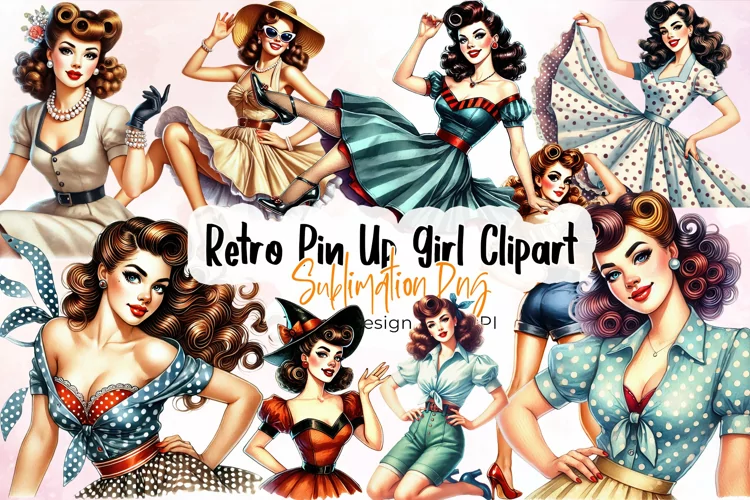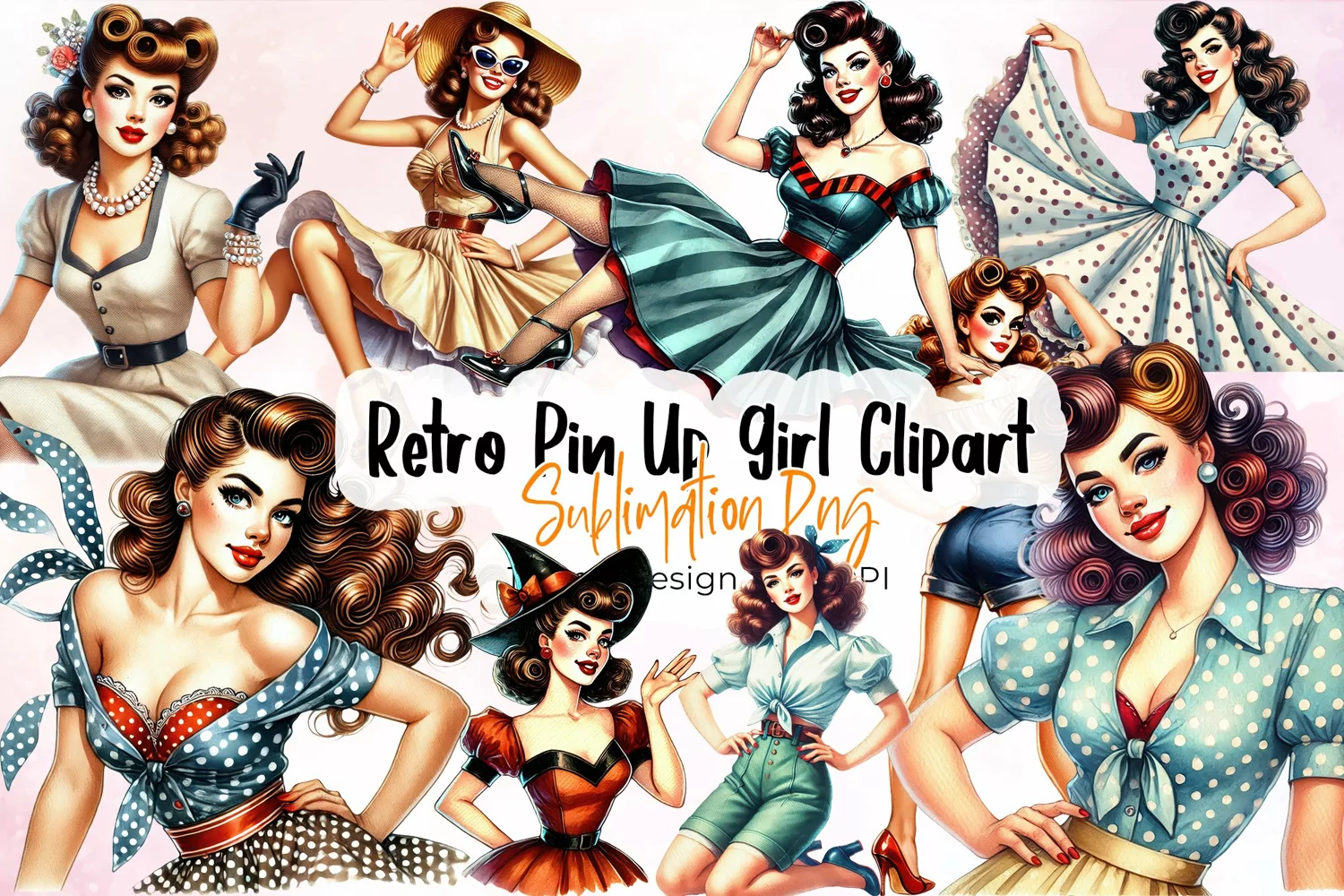 Digital Art Vintage Style Glamour Girl Retro Clipart Classic Fashion Retro Woman Pin-up Girl Pin-up Art Vintage 1950s Rockabilly Style