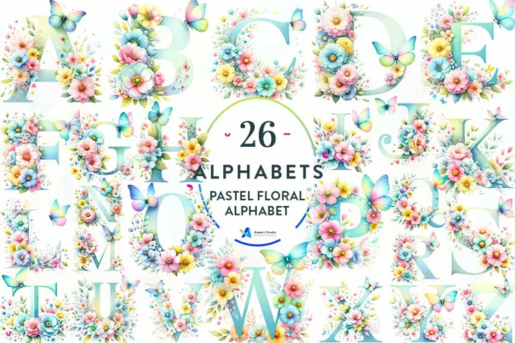 Floral Alphabet Instant Download Digital Download Pastel Colors Watercolor Alphabet Floral Alphabet Clipart Alphabet Sublimation Spring Alphabet Watercolor Pastel Floral Alphabet Pastel Spring Floral Alphabet