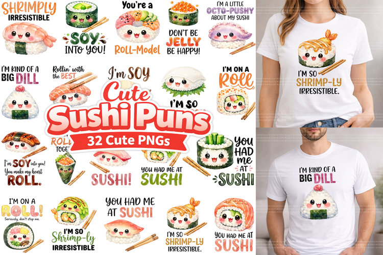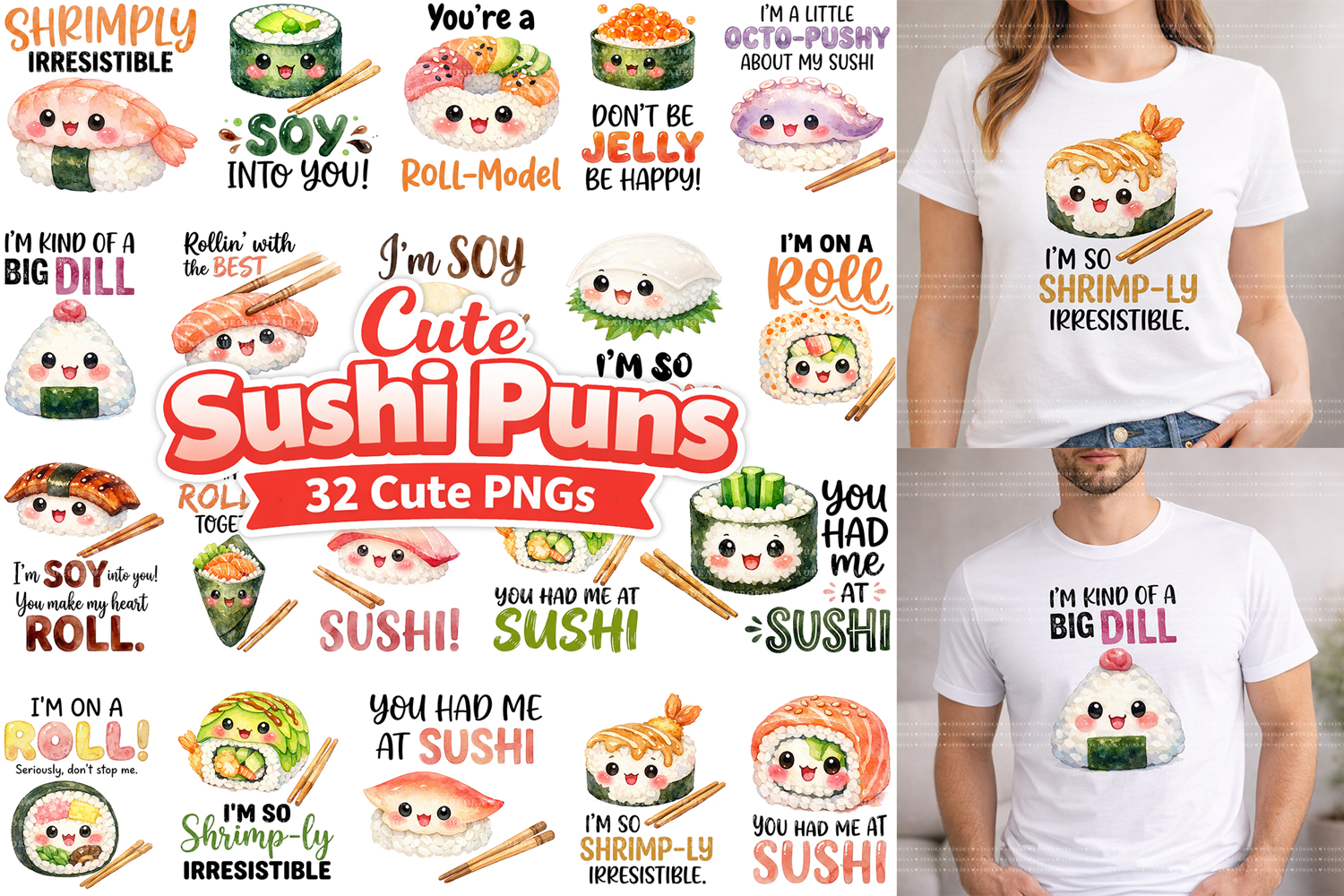 Similar Design Products to Funny Sushi Puns Watercolor PNG Bundle