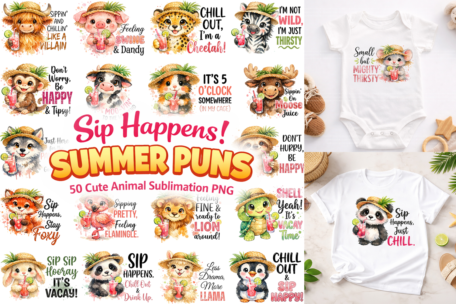 Summer Animal Pun Sublimation Bundle PNG example image 1