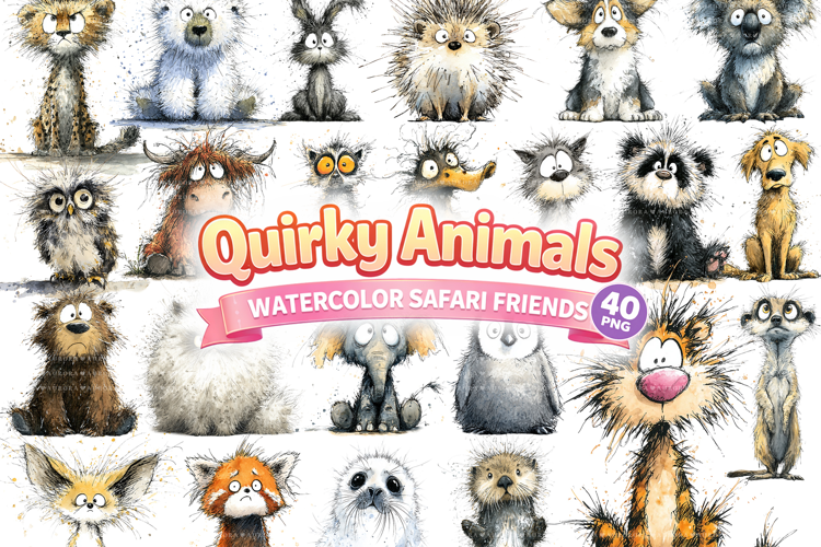 Similar Design Products to Quirky Watercolor Animal PNG Bundle