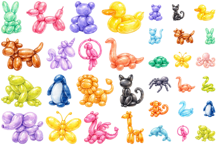 Watercolor Balloon Animal Clipart PNG Bundle