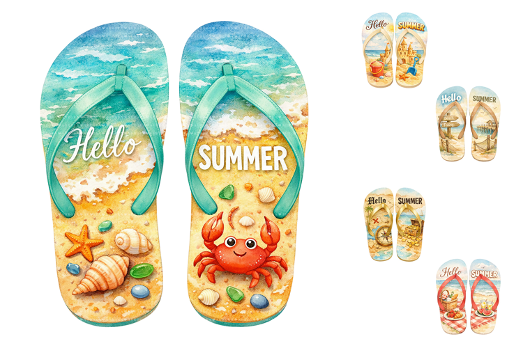 Hello Summer Flip Flop Sublimation PNG example image 1