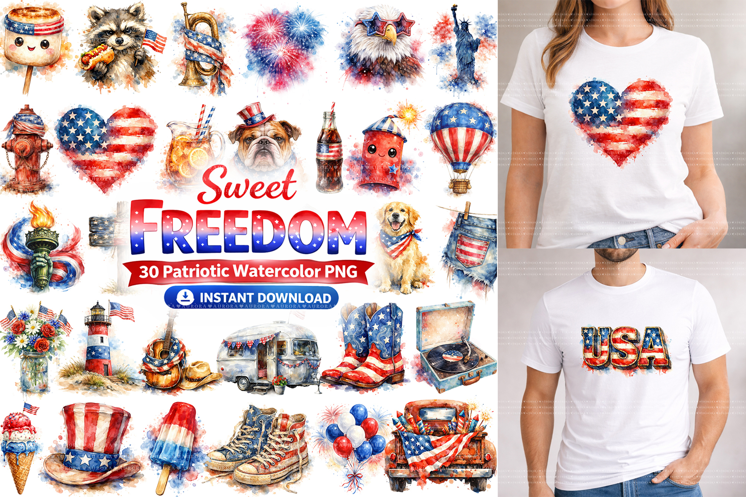 Similar Design Products to Watercolor 4th of July Clipart Bundle