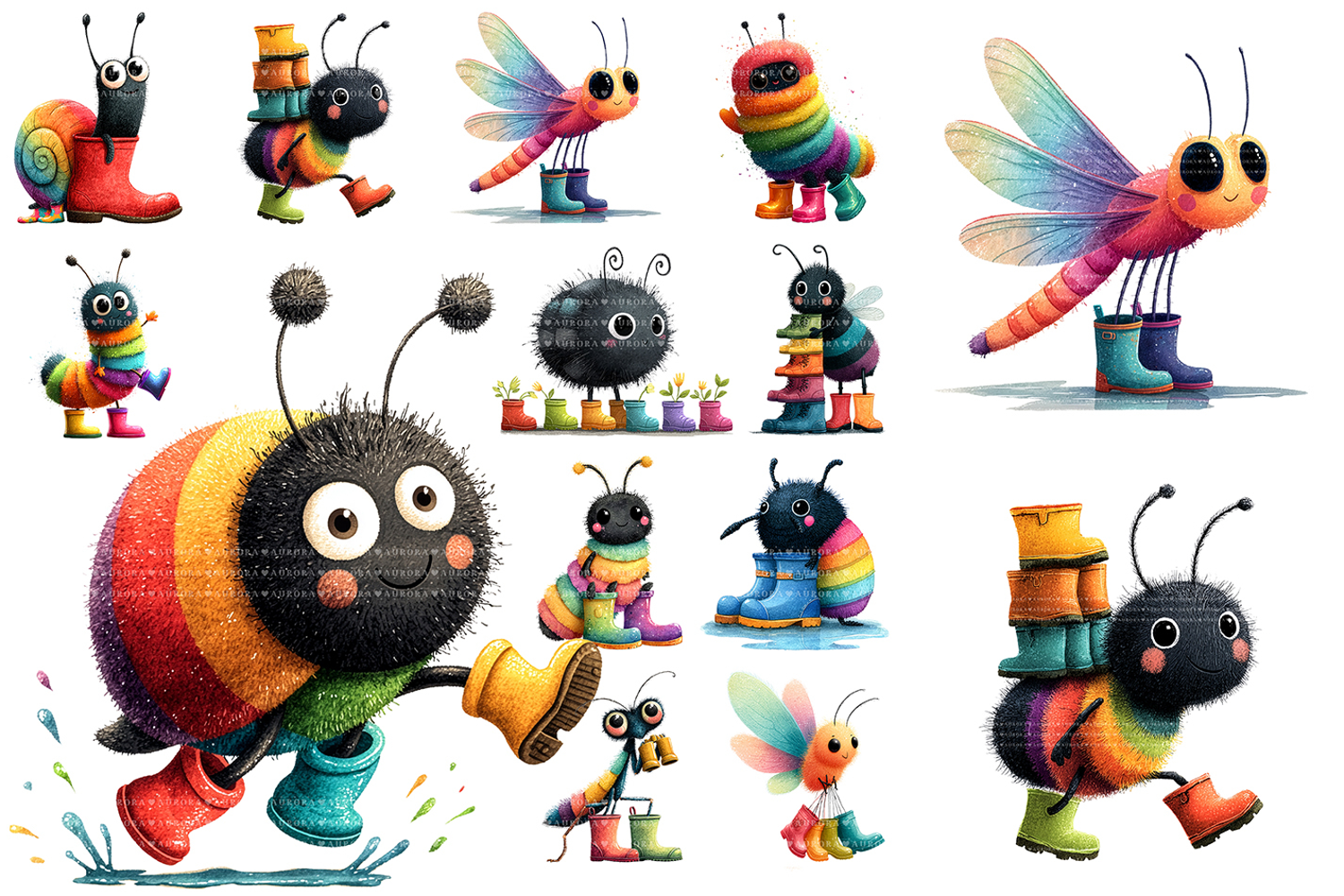 Sublimation Design Commercial Use Png Baby Shower Crafts Kids Shirt Transfer Spring Garden Art Bug Clipart Bundle Rainbow Insect Png Bugs In Rainboots Rainy Day Insects Nursery Bug Decor
