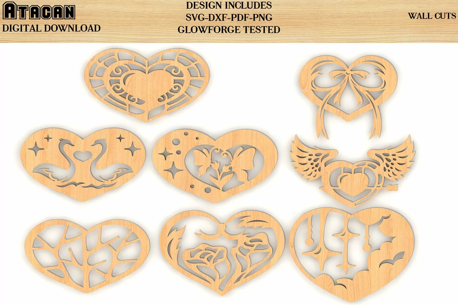 8 Decorative Hearts for Wall SVG Bundle / Wood Wall Hanging