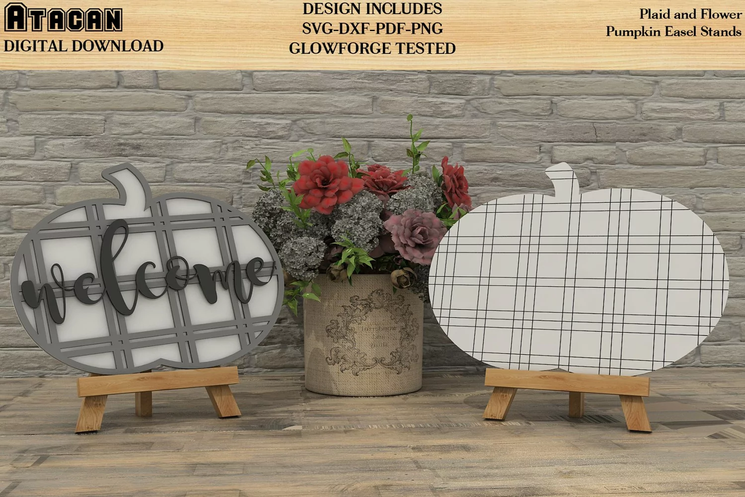 Plaid and Flowery Pumpkin for Easel Stands SVG files 674