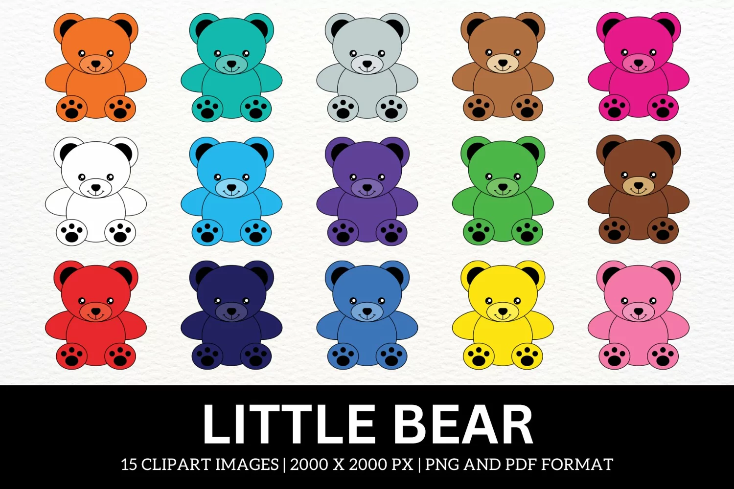 ✓ 15 colorful happy bears cliparts in PDF format