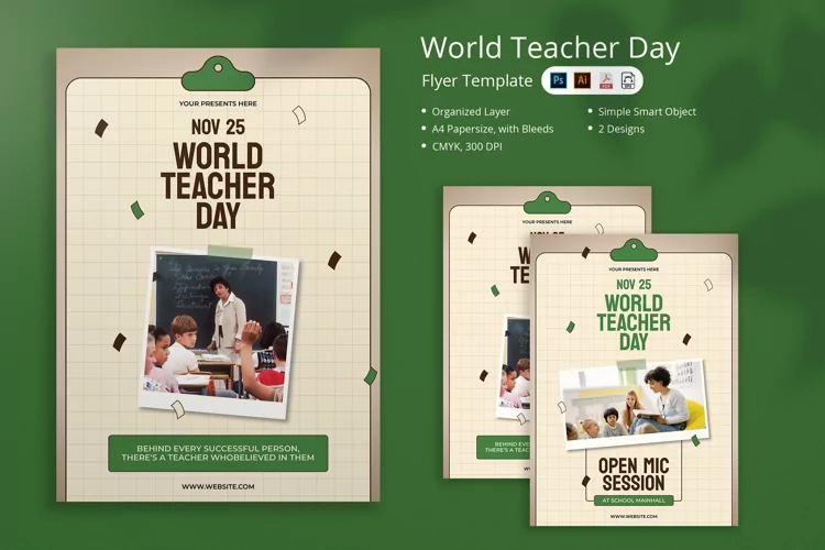 **Genial - World Teacher Day Flyer** is business flyer template for **Teacher Day Celebration**.