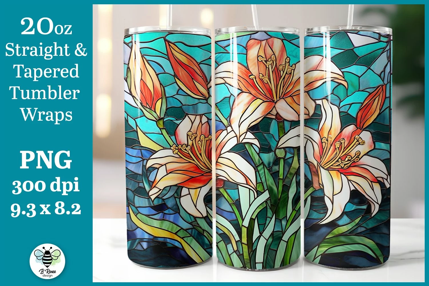 These pretty stained glass Lillies make a great tumbler design! This design is included for both straight and tapered 20oz tumbler wraps.