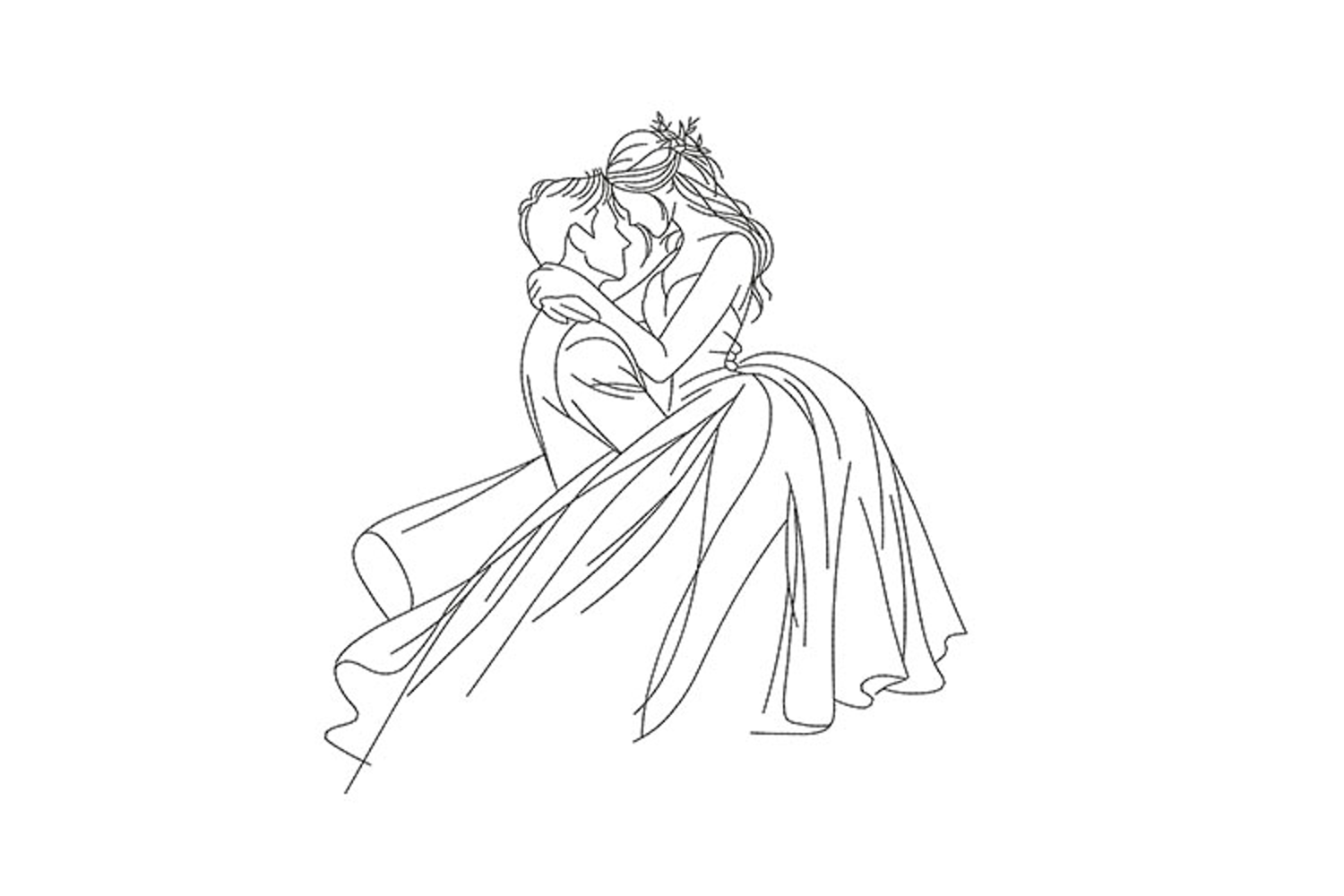 Romantic Wedding Couple Embroidery Design – Machine Embroidery File