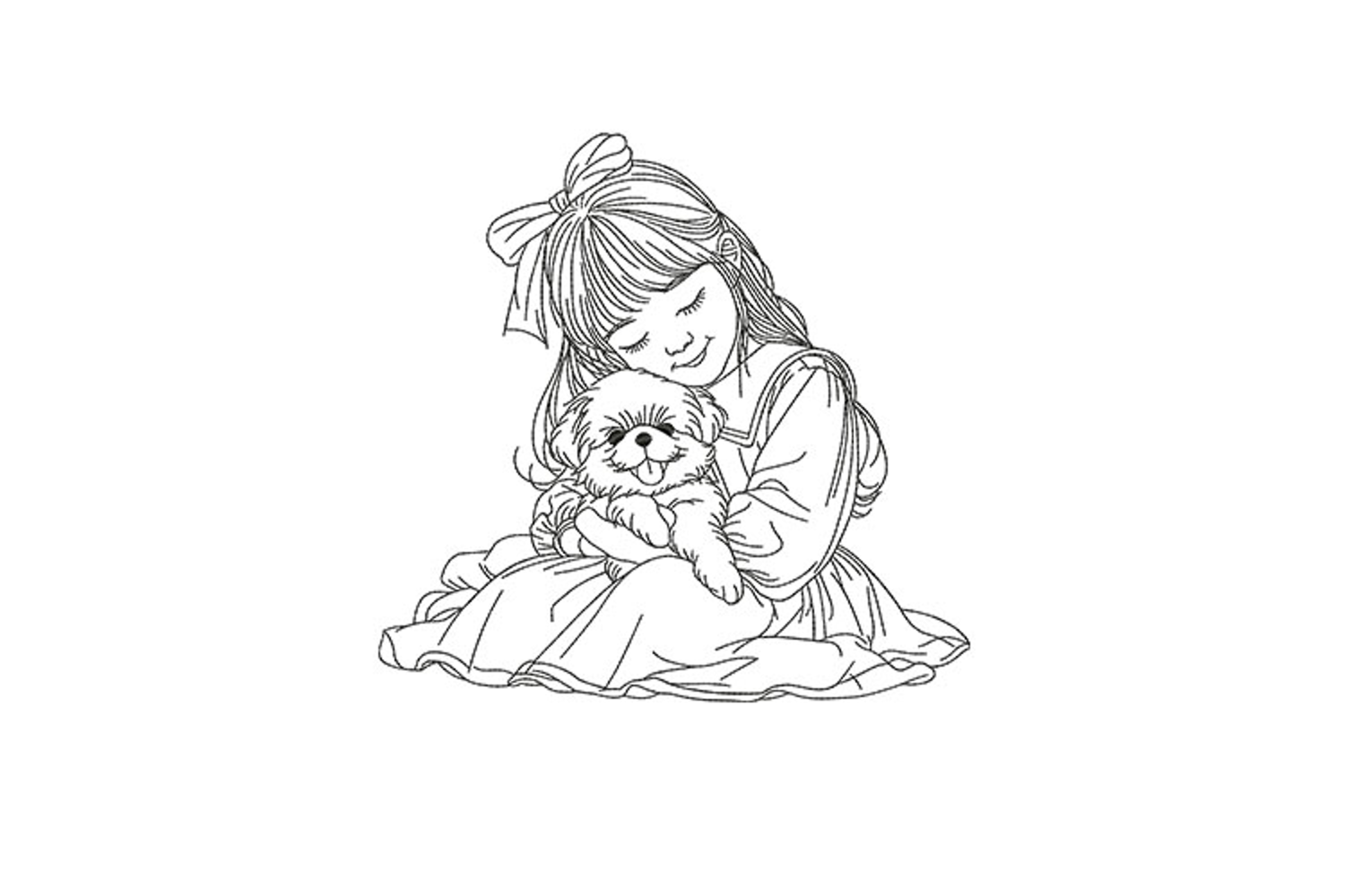Girl Hugging Puppy Embroidery Design – Machine Embroidery File