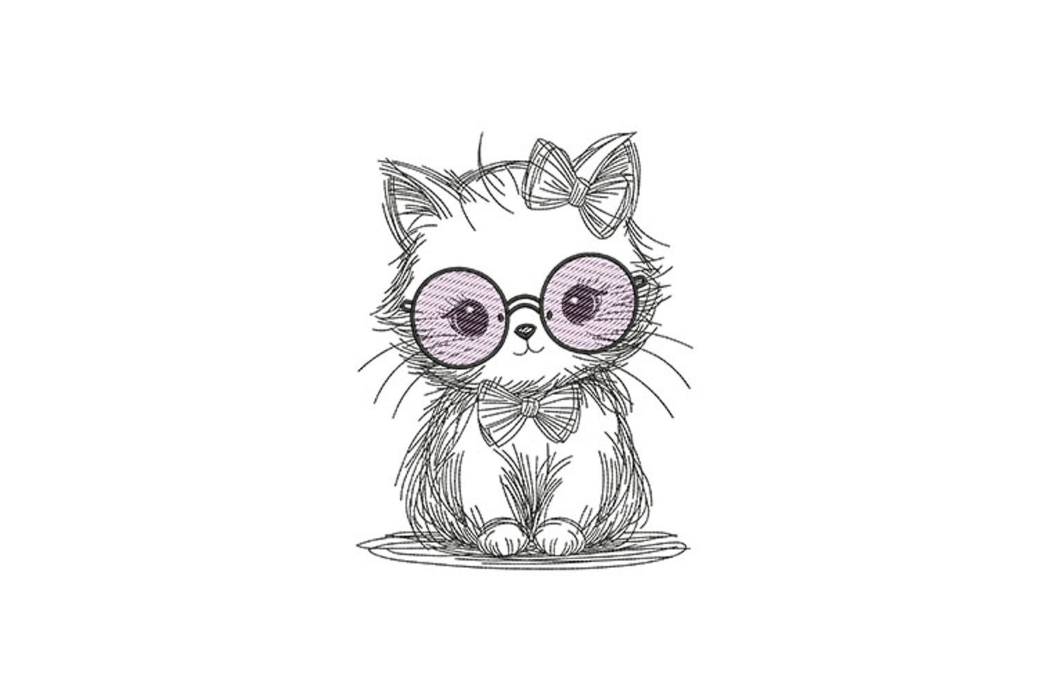 Cute Cat with Glasses Embroidery Design – Machine Embroidery File