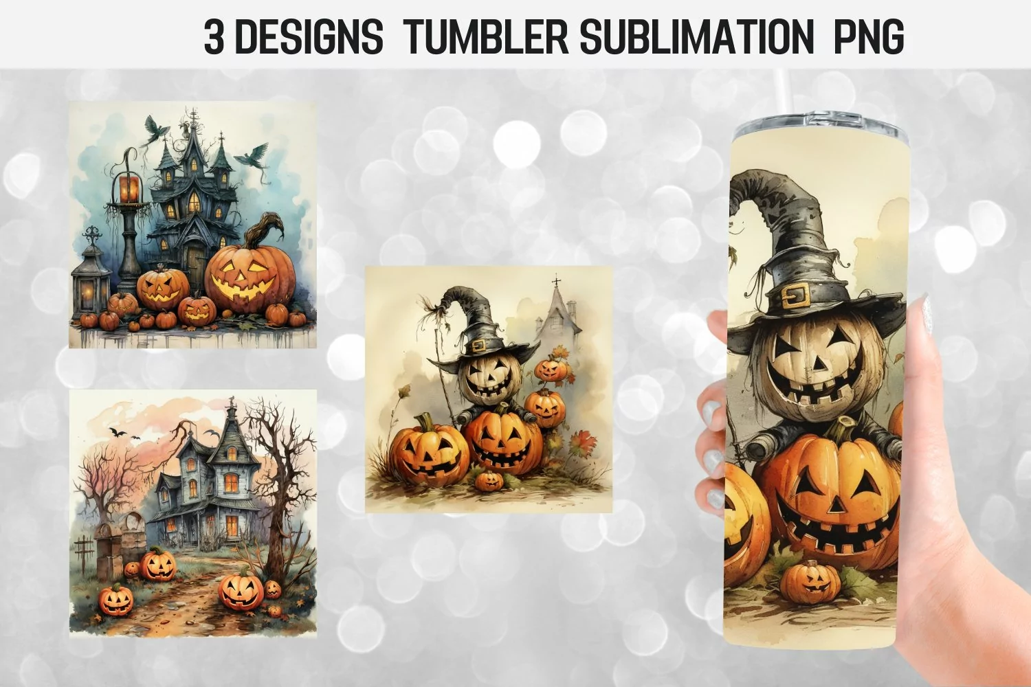 Watercolor Halloween Tumbler Wrap Sublimation Designs