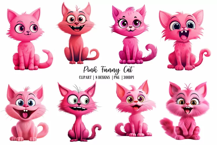 Funny Pink Cat Clipart| sublimation PNG example image 1