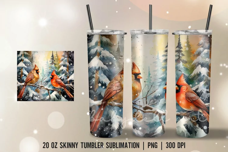 Winter Cardinal Skinny Tumble Sublimation Designs | Tumbler